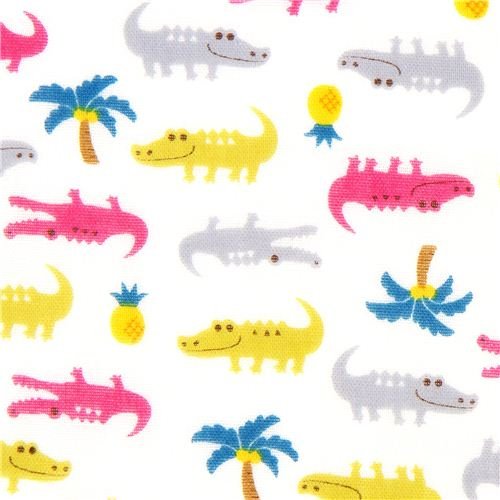double gauze fabric little crocodiles from, Japanese designer fabric with colourful crocodiles, palm trees & pineapple by Kokka